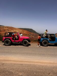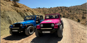 Get behind the wheel of a vintage Jeep and explore the breathtaking landscapes of the Marrakech region! - Only 50 minutes from the ocher city Two options: - Half day (12 p.m. – 5 p.m.) - Full day (10 a.m. – 5 p.m.) On the program: - Pick up from your hotel - Road trip through the Atlas - Tea break and lunch included - Return to Marrakech - Practical information: - 20% deposit required - Minimum 2 people - License required for drivers