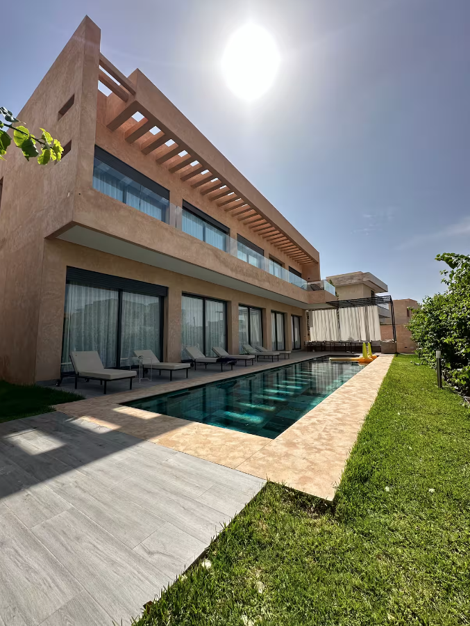 Located in the prestigious Golf Amelkis area, this sumptuous villa offers an exceptional living environment combining luxury and tranquility. Perfectly integrated into its green environment, the property benefits from breathtaking views of the golf course and the Atlas Mountains. This sumptuous property, with 5 beautifully appointed suites, offers an exceptional setting for an unforgettable stay. Just 10 minutes from downtown Marrakech and the airport.